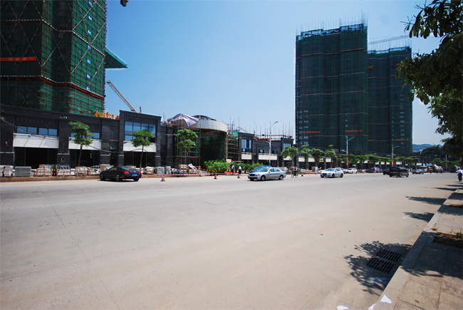 與20天之前相比,最為明顯的變化是項(xiàng)目沿永盛北路一側(cè)圍墻已經(jīng)全部拆除,取而代之的是一長(zhǎng)遛即將完工的沿街商鋪。