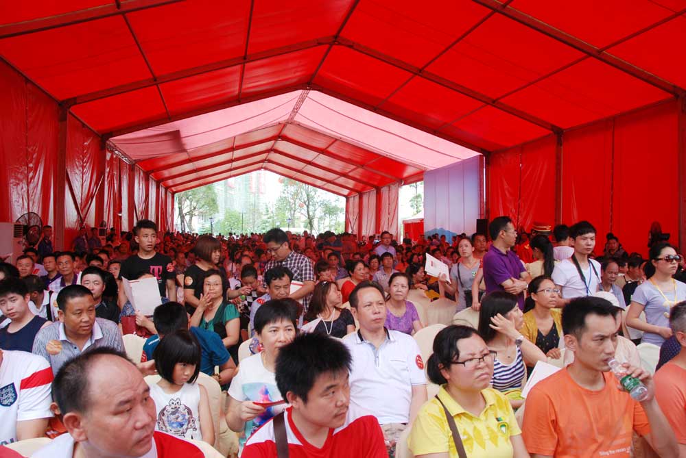 6月21日上午,天降大雨,與之形成鮮明對比的是瑞士半山營銷中心人頭攢動的火爆場景——逾500名置業(yè)客戶及其家屬,聚集在雁鳴湖邊的休息區(qū)翹首以盼項目首次開盤。為確保本次開盤的公平、公正,三正地產采用了電腦搖號的方式,并邀請廣東電視臺主持人現場主持搖號。