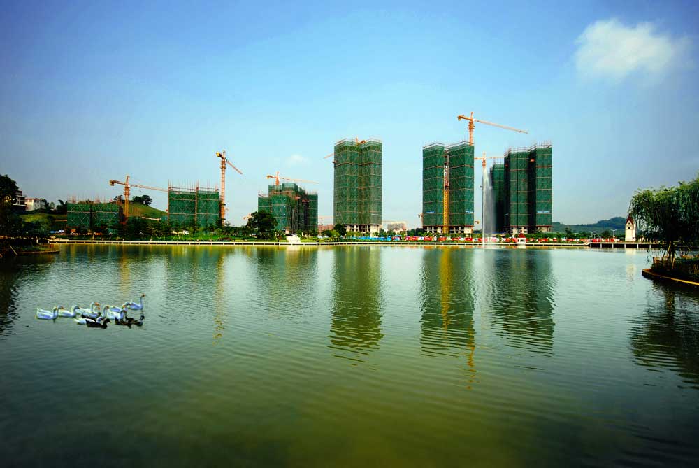距離開盤僅月余,項目一區(qū)內(nèi)別墅主題工程已接近完成,5棟洋房也建至約25層。與一區(qū)一路之隔處便是二區(qū)現(xiàn)場了。工程人員告訴記者,目前正在加緊建設(shè)二區(qū)工程,其中5#、6#高層進度最快,已經(jīng)建至15層高度。