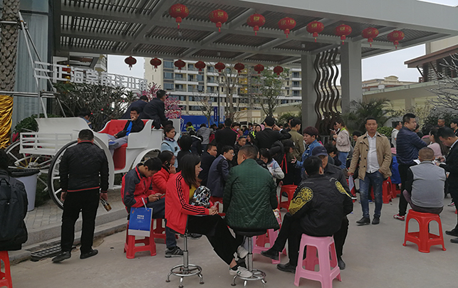 時間回到2月6日,這一天別院樣板房全面開放參觀,許多客戶都是剛下飛機就馬不停蹄地趕到三正海棠南洋小鎮(zhèn),在置業(yè)顧問的帶領(lǐng)下興致勃勃地前往參觀別院樣板間示范區(qū)。此次樣板間的展示可以說是非常地成功,每一位親臨樣板間的客戶都贊不絕口,紛紛表示這樣美的建筑、戶型與環(huán)境,以及相對海棠灣區(qū)其他樓盤來說更低的價格,他們能夠遇上這樣的項目非常的幸運,于是這才出現(xiàn)了在開盤前一天就有客戶排起長隊的畫面。